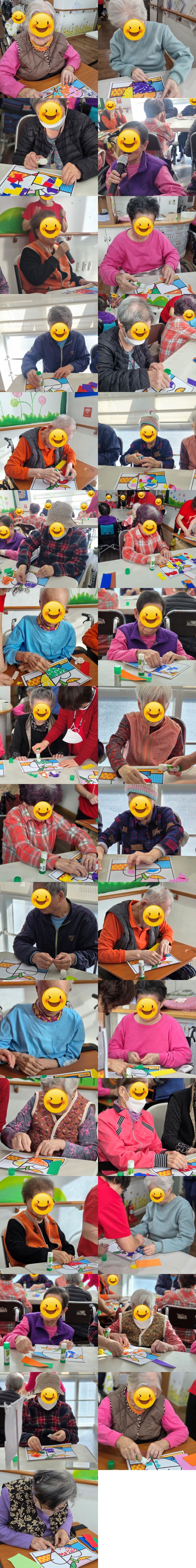 색종이와 신문지만을 이용해도 이렇게 예쁜 작품이 나오네요 뭔가 빛이 들어오는 고풍스런 건물의 스테인드글라스 같은 느낌입니다. 이렇게도 저렇게도 작품이 되는 우리 어르신들의 금손 퍼레이드 구경하고 가세요~^^
