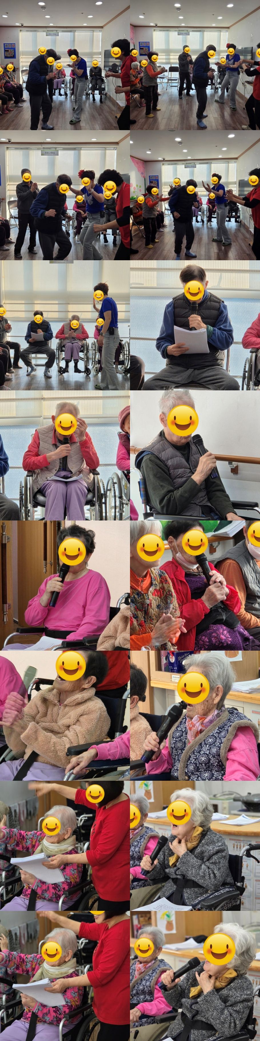 쪼매 춥다고 이불속에만 있기없기? 이불 박차고 일어나야죠! 마이크 잡고 흔들어봐야죠! 찬바람 그까이거 뭐 대수겠습니까? 모이기만 해도 온풍이 불어오는 송현요양원입니다~^^