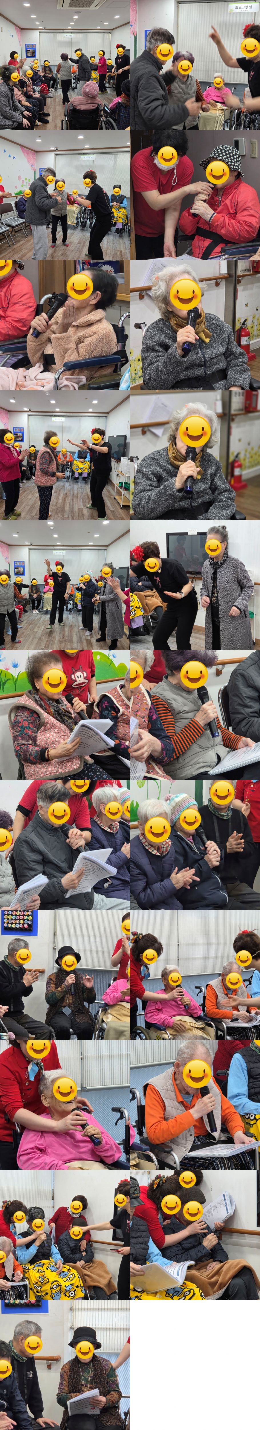 제가 또 속았습니다. 매번 속습니다. ‘이 자리 싫다’ ‘하기 싫다’ ‘방으로 가자’ 떼쓰는 우리 어르신들 겨우 달래놓았건만!!! 일단 노래소리가 들리면 바로 웃음모드 전환입니다. 좀전까지 분명 이런 모습이 아니었는데...쩝...