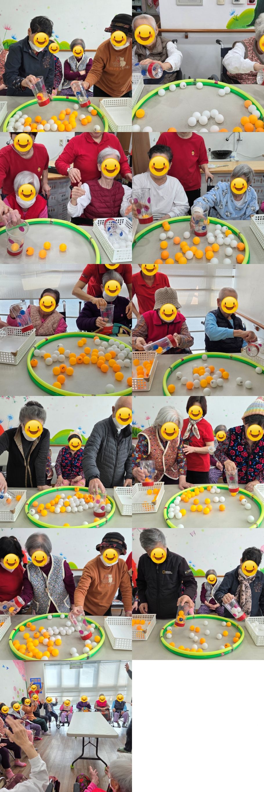 벌써 춘곤증이신가요? 우리 어르신들 답지않게 이리 나른한 모습들을 보이시다니! 그치만 저도 봄바람 탓인지 점심을 두그릇 먹은 탓인지 하품만 계속 나오네요. 나른함을 눈치채셨나...오늘은 강사님이 마술같은 컵을 들고 오셨습니다. 탁구공을 내리쳤더니 컵 안으로 쏙 들어오는 것이 바로 집중모드되는 우리 어르신들인데요 잠을 깨우는 것은 좋으나 살림살이 깨는건 곤란한거 아시죠?