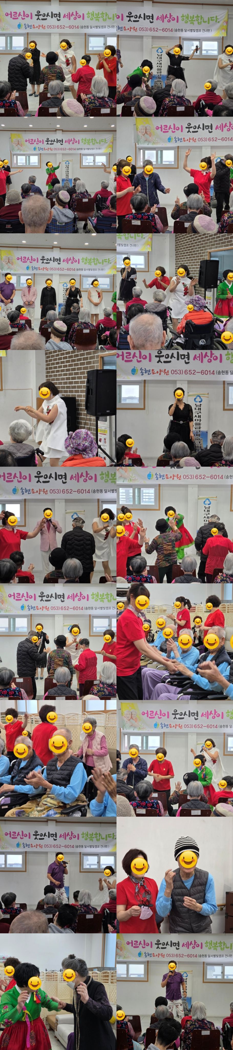 밖에 날씨 흐리다고 저희까지 흐릴수 있나요? 송현은 하염없이 "맑음" 입니다. 쉴새없이 이어지는 공연에 우리 어르신들 저절로 스탠드업!입니다. 다리에 힘이 없더라도 실망하지 마십시요. 우리 어르신들이 계신곳이 곧 무대 중앙이니! 자 달려봅시다~^^
