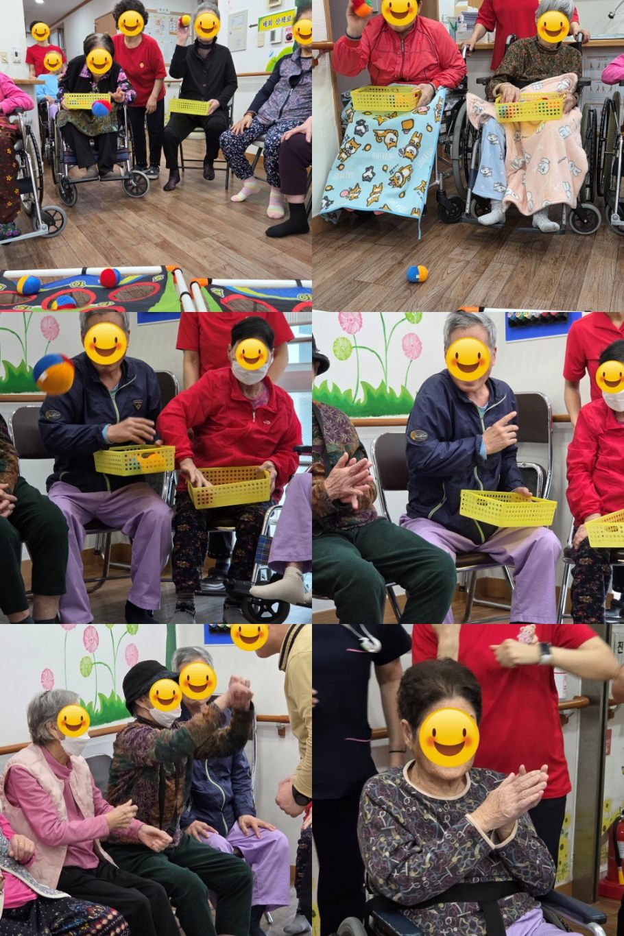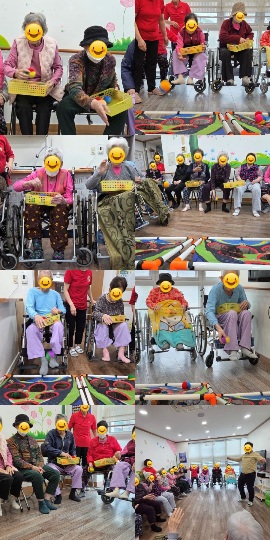 최고점을 조준하고 손목 스냅을 이용해 포물선을 그리듯 가볍게 툭! 일단 이론은 완벽합니다. 하지만 실전은... 구멍만 피해가는 오자미 속출입니다. 어째 못넣을수록 웃음은 많아지는 오자미 게임! 집중한 우리 어르신들 모습 구경하시고 가세요~^^