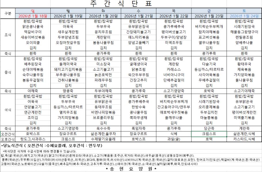 2026년 1월넷째주식단표